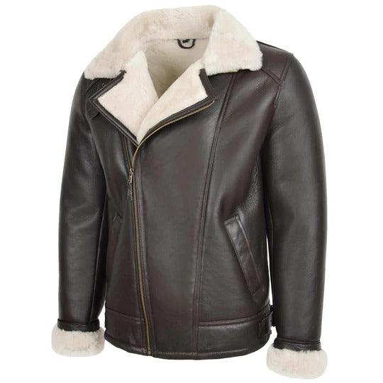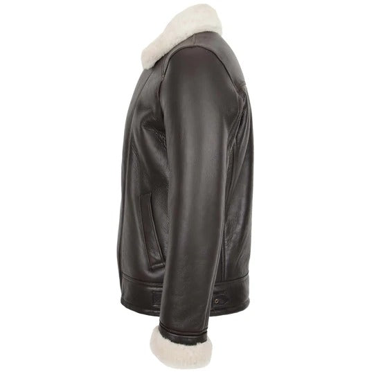 B3 Bomber Mens Black Real White Shearling Bomber Leather Jacket