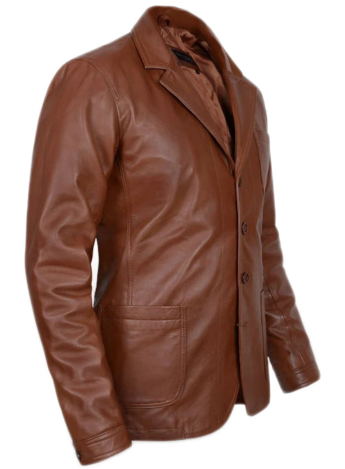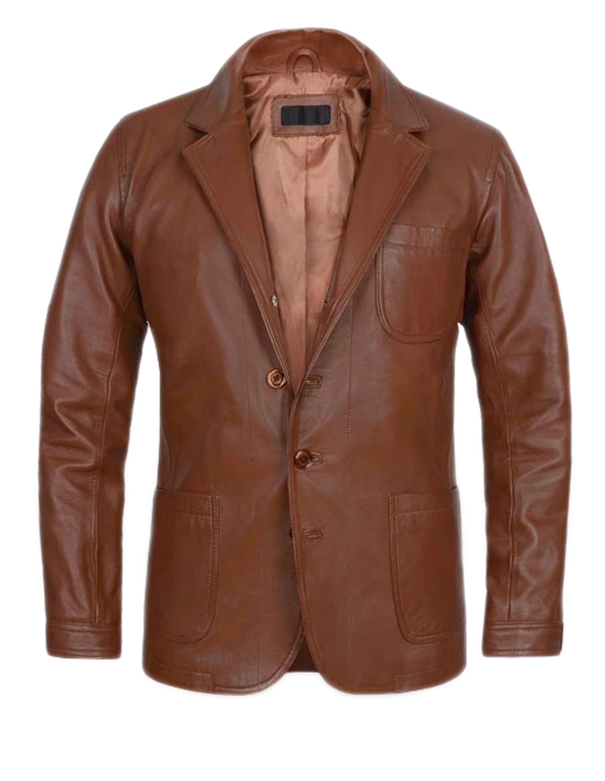 Brown Vintage Waxed Mens Classic Sheepskin Leather Blazer