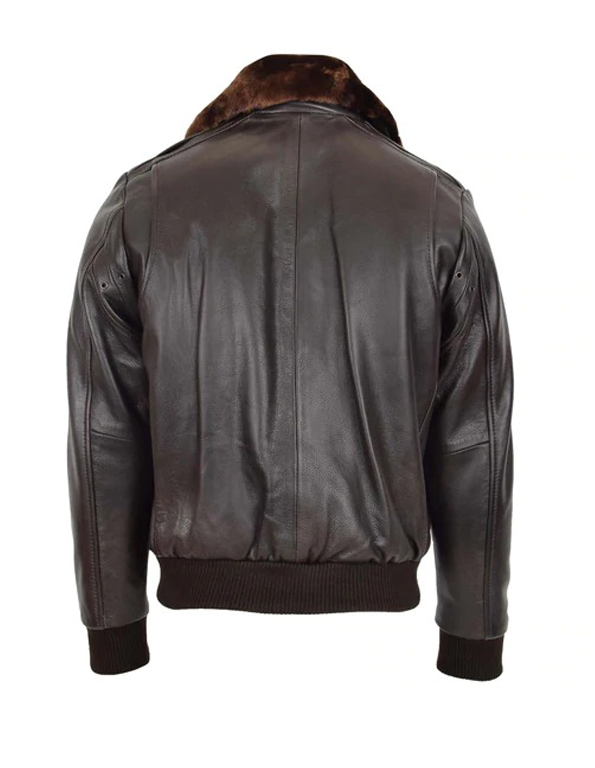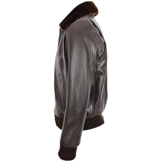 Mens Brown A2 Bomber Fur Collar Sheepskin Leather Jacket