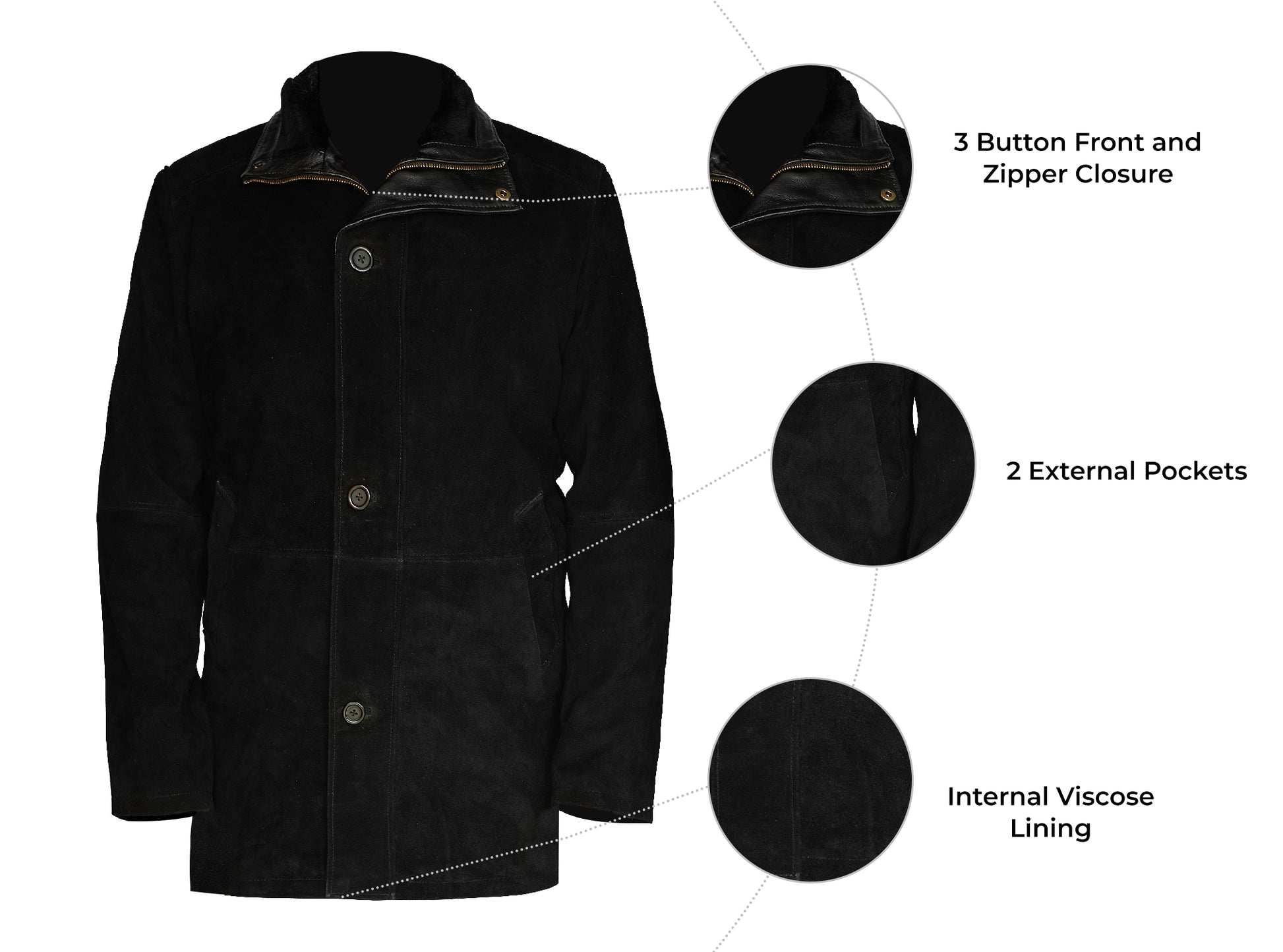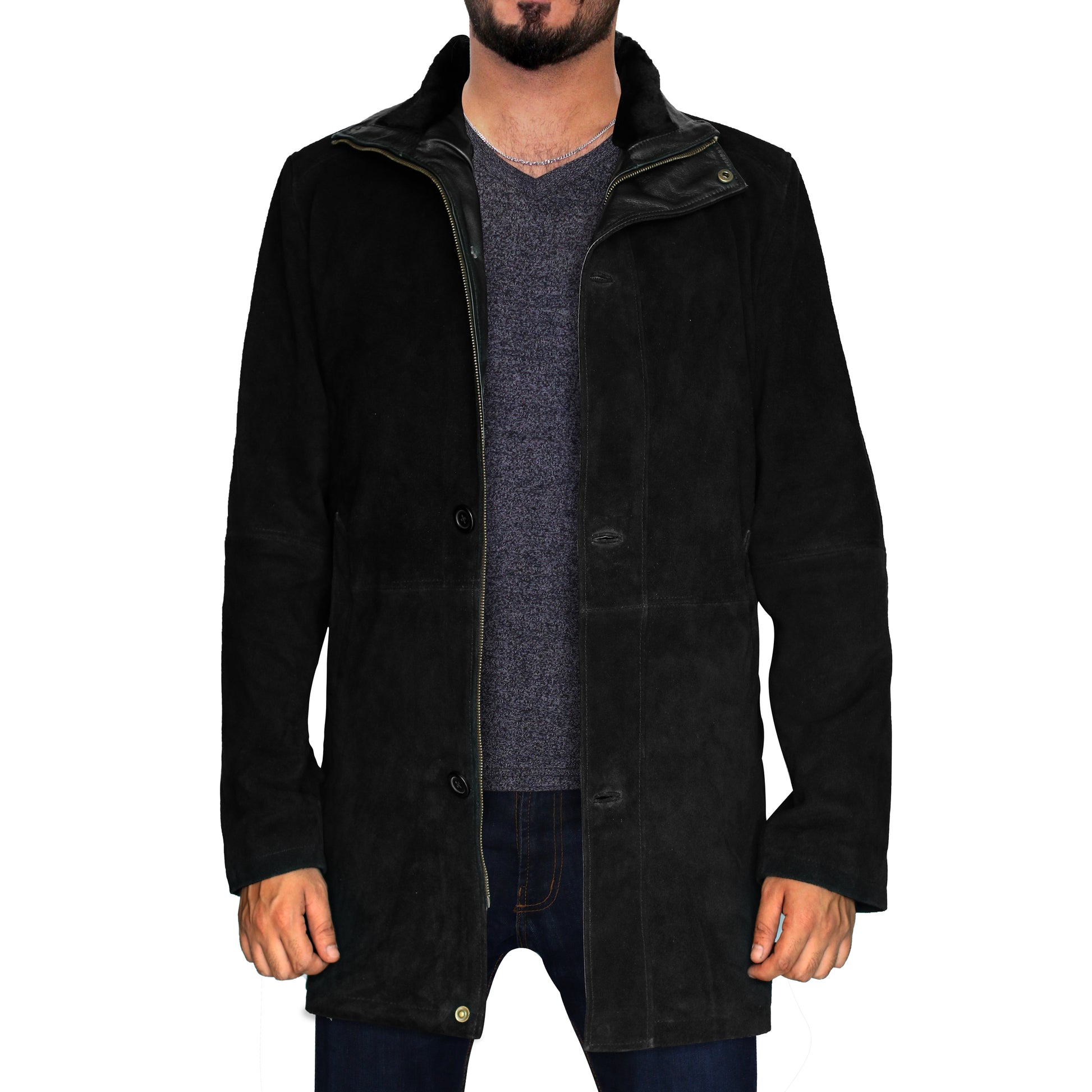 Men's Trucker Casual Khaki Goat Suede Leather Shirt Jeans Jacket