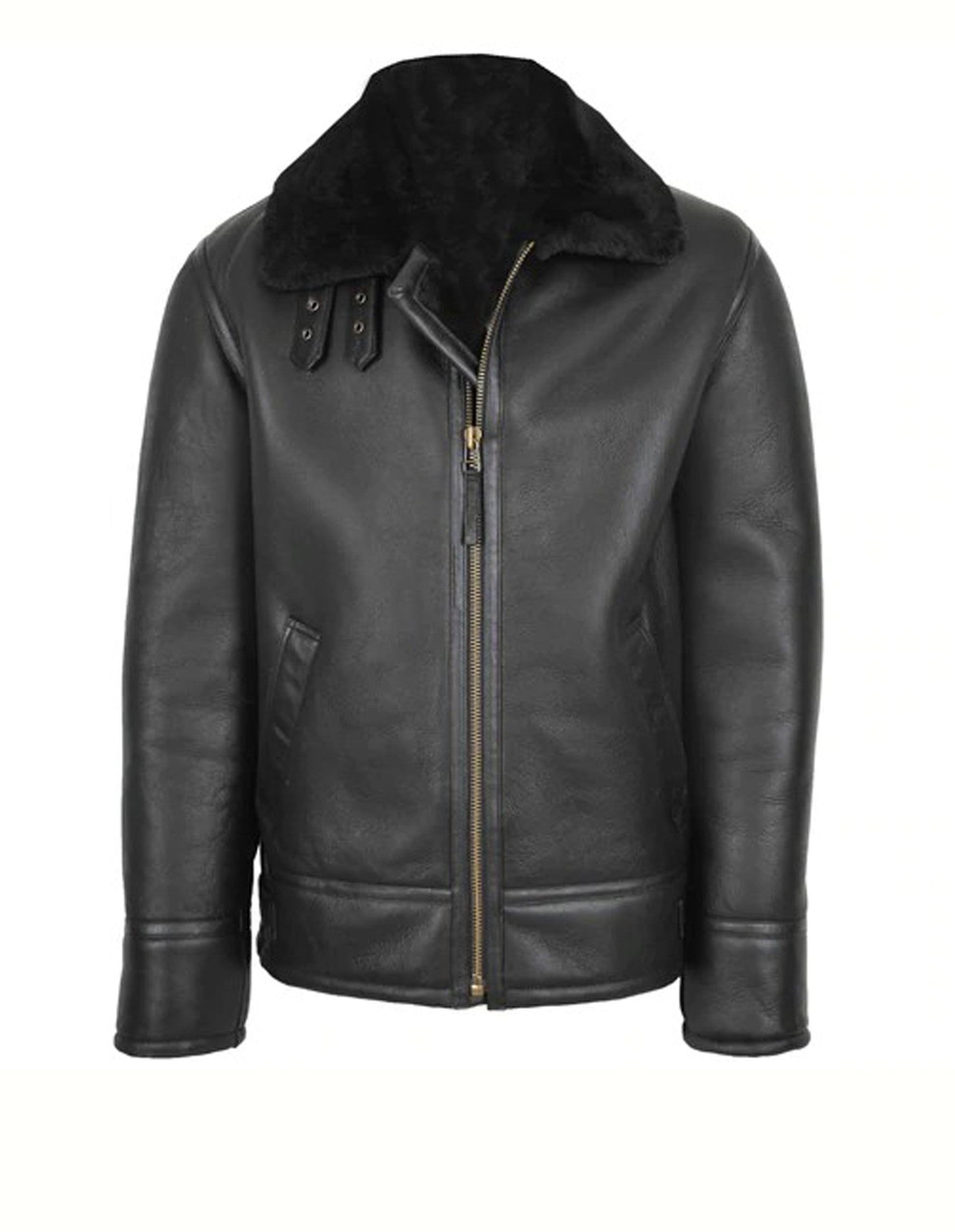 RAF Bomber Black Men B3 Bomber Jacket Aviator Real Shearling Genuine Leather Jacket