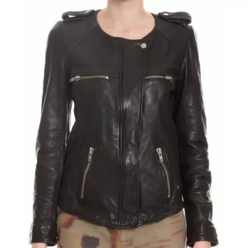 Women Jackets Lizzy Caplan Now You See Me 2 Lula Collarless Genuine Leather Jacket