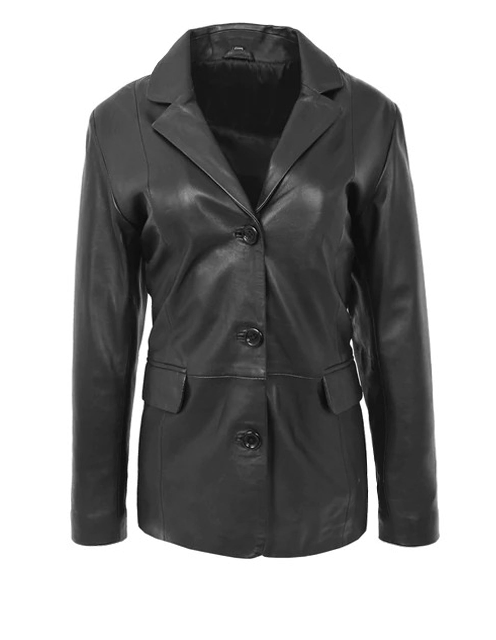 Women's Black Sheepskin Two Button Leather Blazer Coat