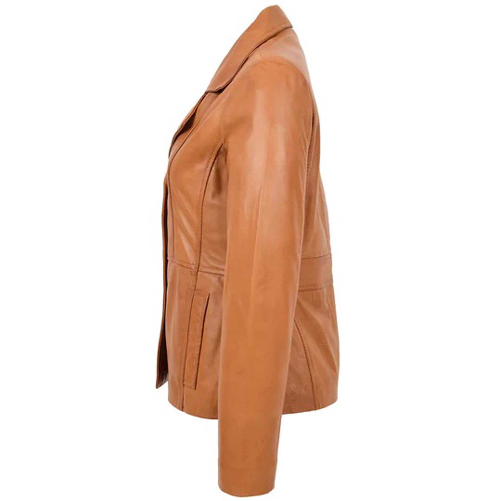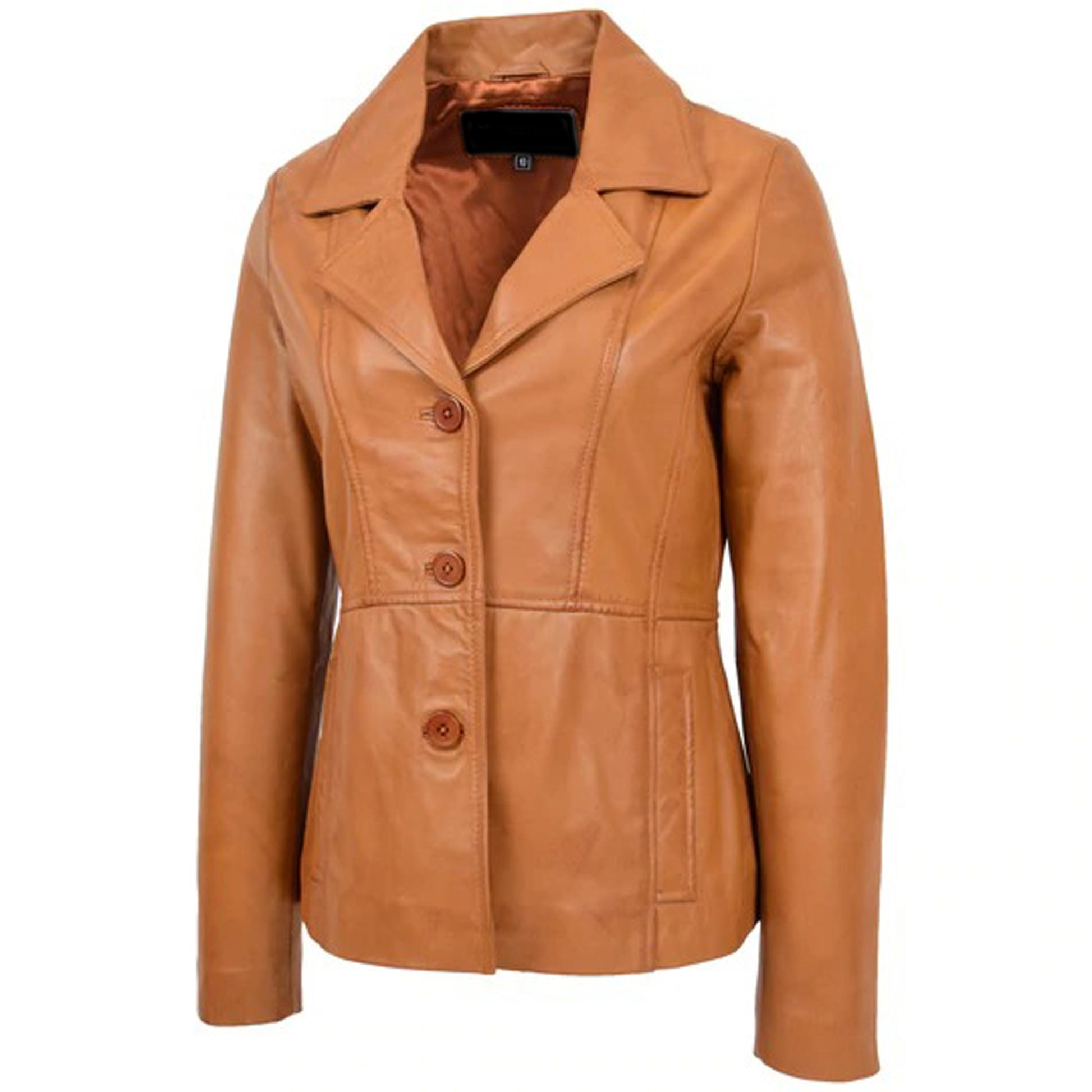 Women's New Tan Sheepskin Leather Blazer Coat