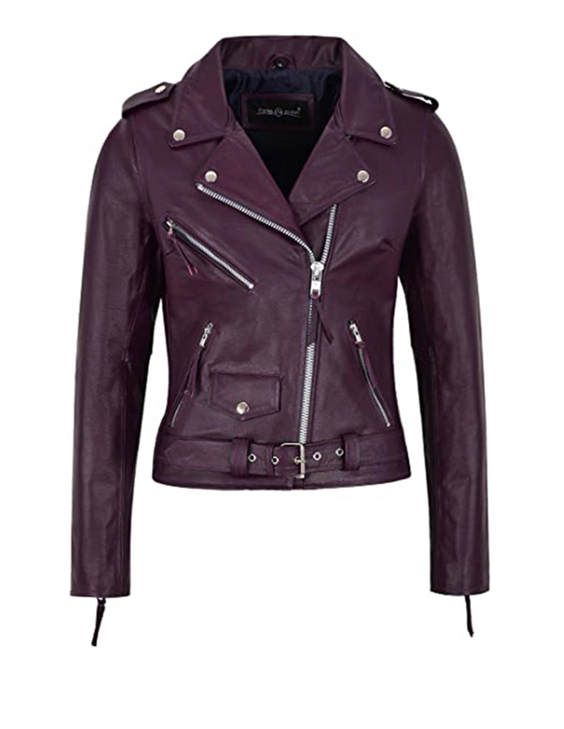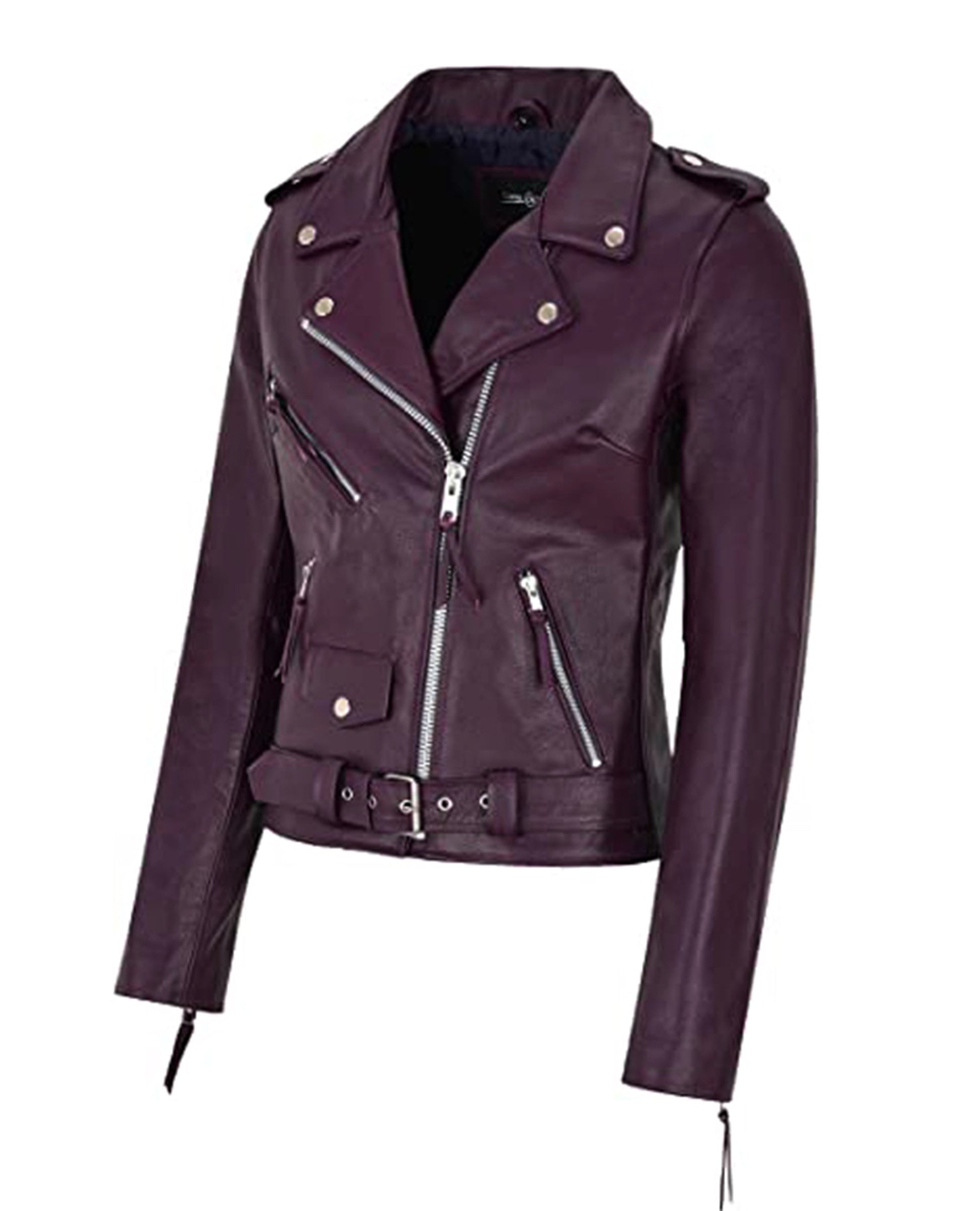 Women's Purple Biker Motorcycle Sheepskin Leather Jacket
