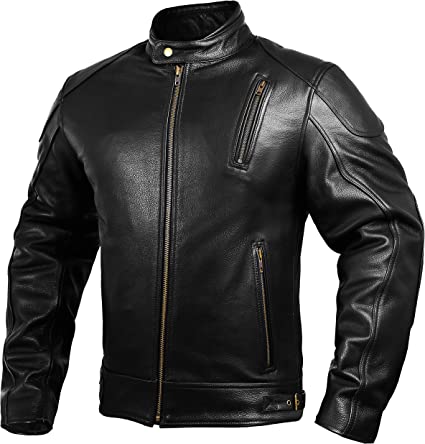Mens Leather Motorcycle Jackets Black Moto Riding Motorbike Racing Cafe Racer Biker Jacket CE Armored (M)