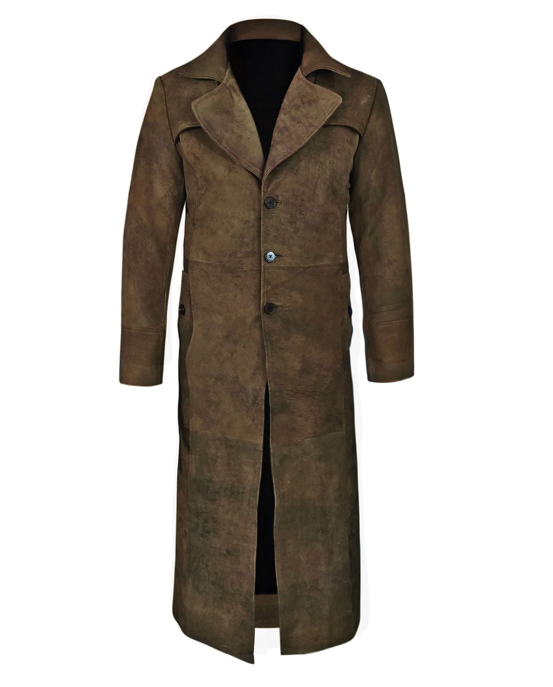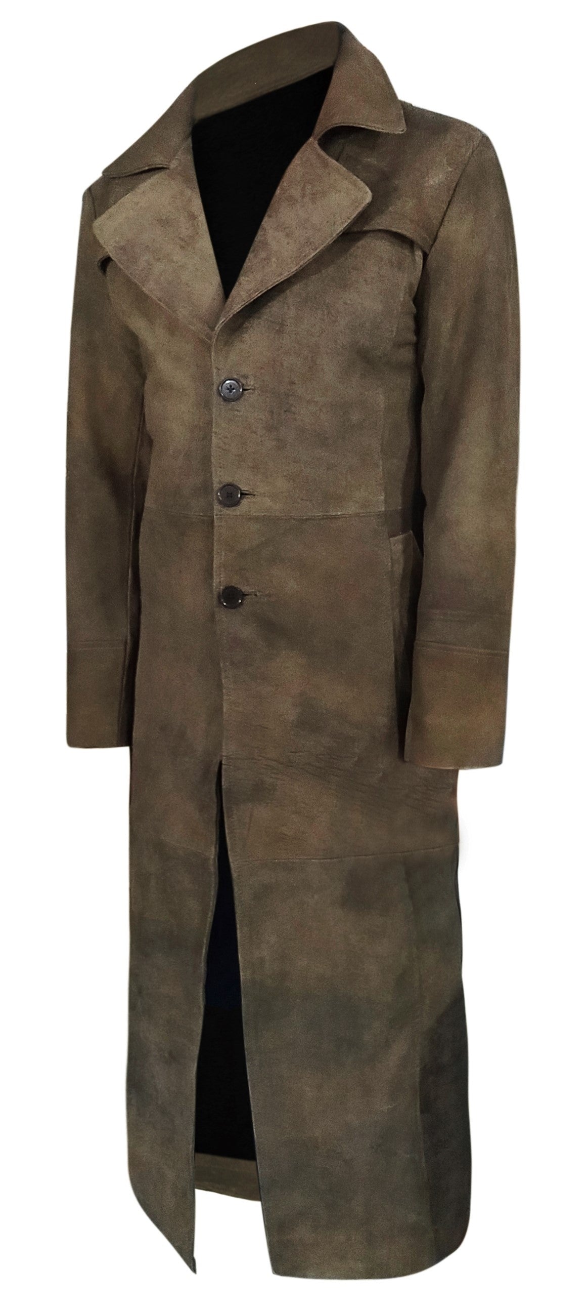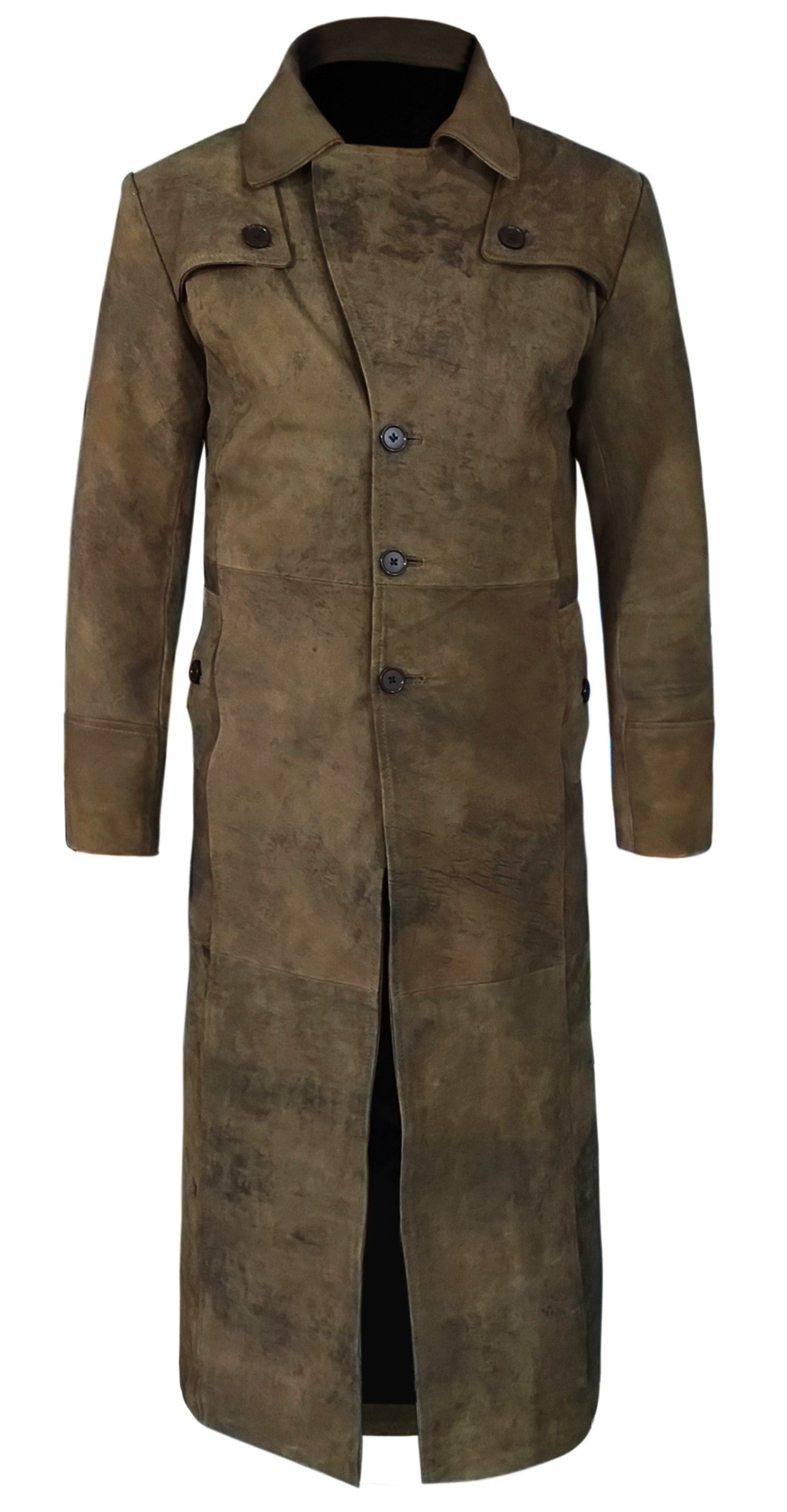 Light Snuff Leather Duster Trench Coat For Men