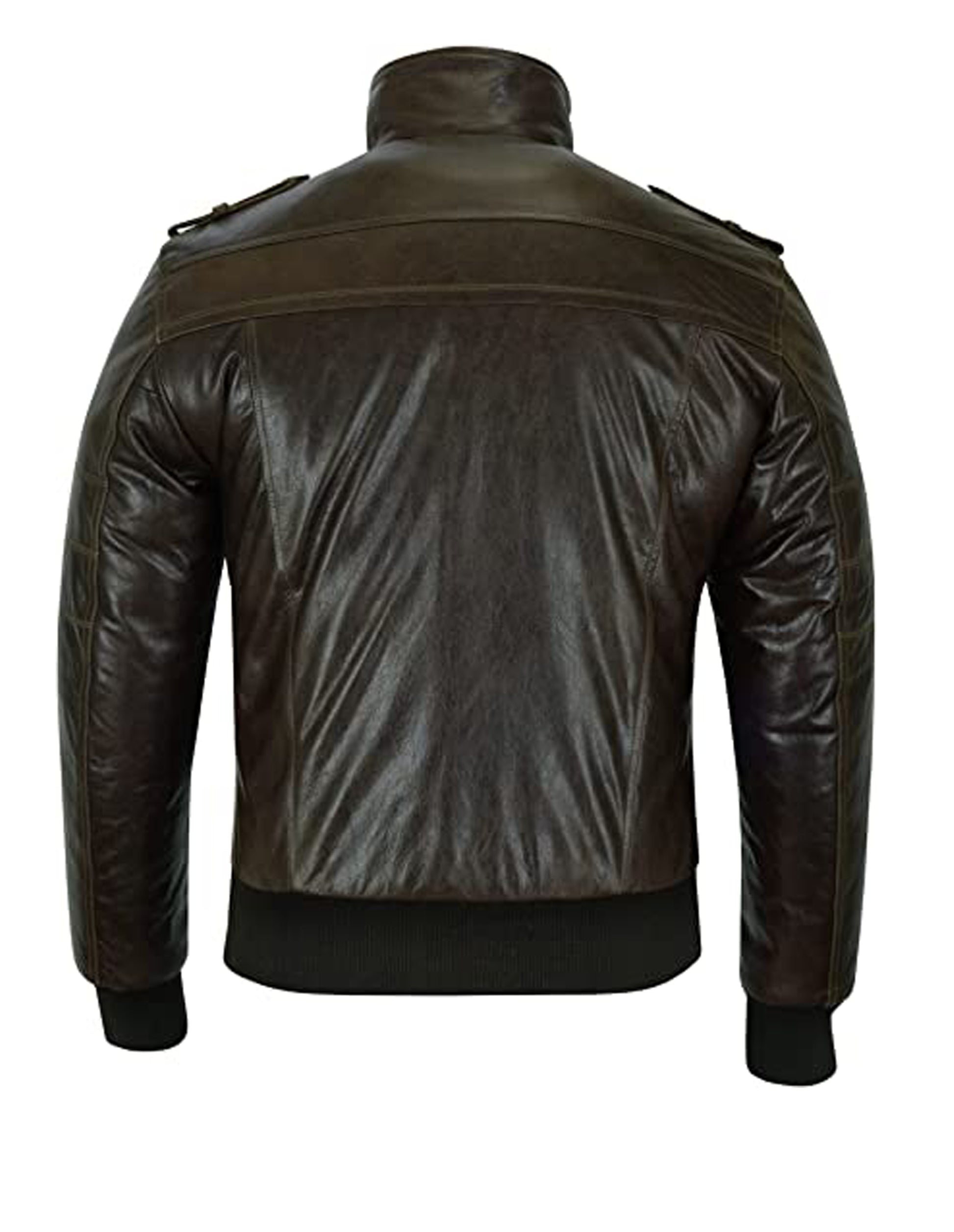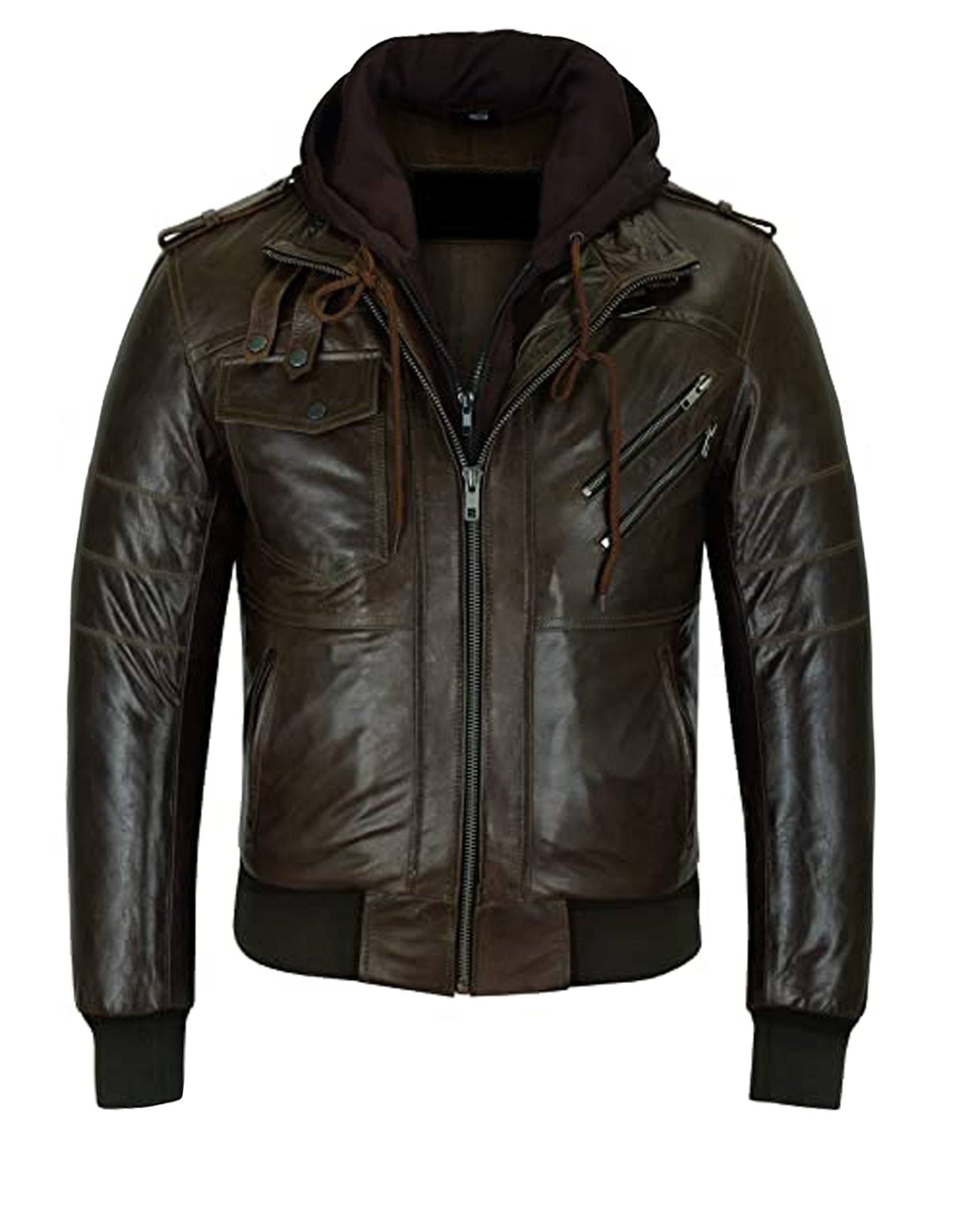 Men Brown Waxed Leather Casual Jacket with Removable Hood