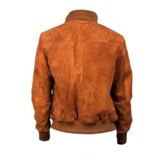 Men's Brown Bomber Biker Motorcycle Real Genuine Suede Leather Jacket